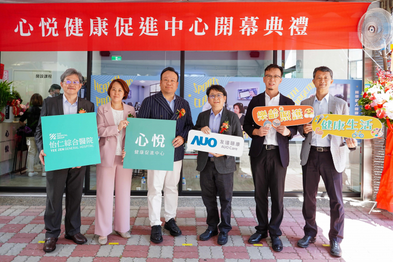 心悅健康促進中心與怡仁醫院合作,並導入友達頤康運動健康管理方案,為樂齡族群打造全新的健康運動空間(圖左至右:怡仁醫院執行副院長黃文豪、承業生醫財務長陳怡君、承業生醫副董事長李典穎、友達光電新事業暨投資管理總部副總經理楊本豫、怡仁醫院副院長廖耕望、友達頤康董事長葉俊正)